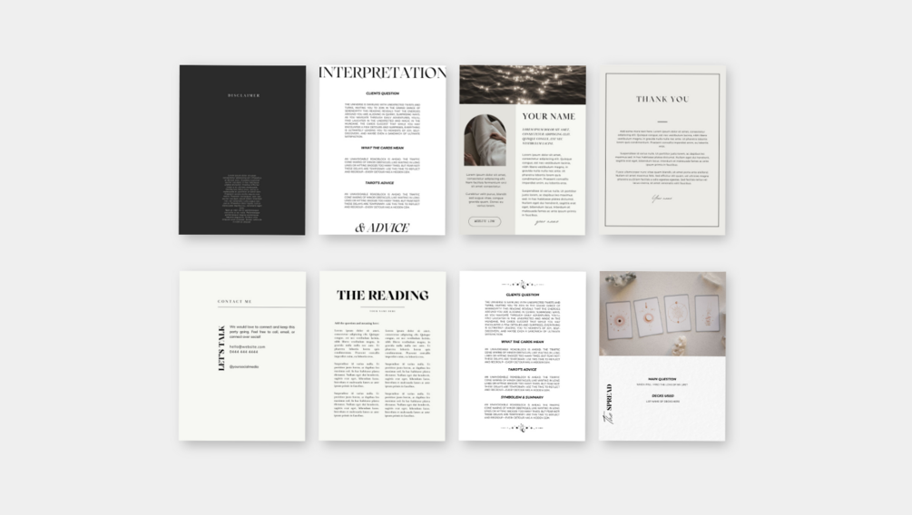 16-page Tarot Reading Report Template, fully customizable in Canva.